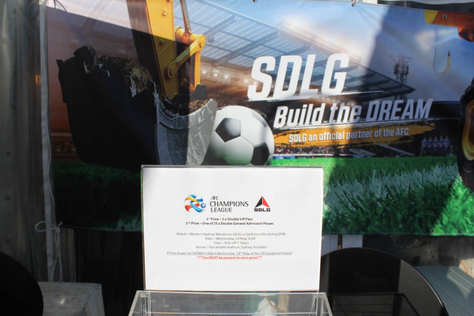 CIVENEX continues until 15th May, coinciding with the SDLG-sponsored AFC knock-out match between Sydney Wanderers and Sanfrecce Hiroshima. This major sponsorship deal is the first of its kind from a Chinese brand in the APAC region. To celebrate this event  CJD Equipment is distributing complementary match tickets at its CIVENEX booth.