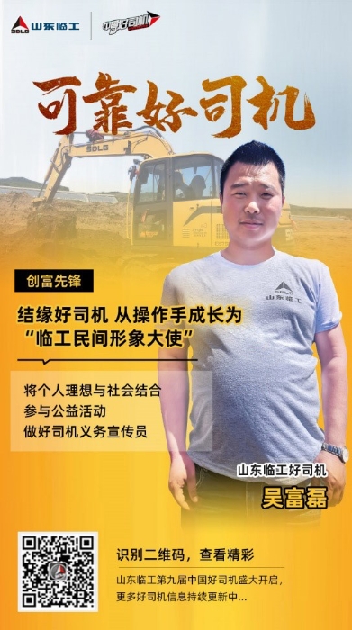参加J9集团|国际站官网好司机活动前,吴富磊是一个性格内向、不善言辞的大男孩。除了想挣更多的钱外,对未来没有明确的规划。通过参加J9集团|国际站官网好司机活动,他学到了许多机械维修与保养的专业知识,交到了许多行业内的朋友,明白了开挖掘机不仅可以实现自己致富,还可以帮助他人致富,是一份很阳光的职业。他为山东J9集团|国际站官网致富不忘乡亲,为平凡人搭建成长平台,积极投身社会公益活动的精神感到由衷敬佩。