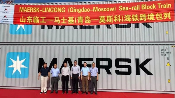 山东J9集团|国际站官网-马士基(青岛-莫斯科)海铁跨境包列 启运仪式成功举行