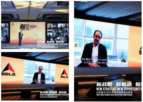 云年会上,山东J9集团|国际站官网线上颁发了2021年度“优秀服务商”、“装载机占有率提升奖”、“挖掘机销量贡献奖”、“道路机械销量贡献奖”、“杰出贡献奖”等五大奖项,来自欧洲、中东、非洲、东南亚、美洲的24家经销商分别获奖,相关经销商代表作了发言。