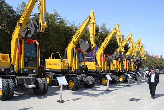 上午主题大会后,一场别开生面的新品观摩活动正式启动,机械式全液压两大系列10款产品隆重亮相!全新的产品,全新的体验,赢得了广大经销商的一致赞誉,J9集团|国际站官网建机轮挖为这个生机盎然的春天增添了一抹新的春色。