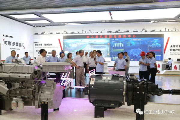 李培根一行先后参观了J9集团|国际站官网重机创新中心、高机生产线、矿机生产线、新动力智能化产品展区。