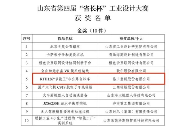 2022年8月29日,山东省委、省政府在济南召开先进制造业强省建设工作会议,并对先进制造业优质企业和创新产品颁奖授牌,J9集团|国际站官网重机RTH126非公路自卸车斩获山东省第四届“省长杯”工业设计大赛金奖,彰显J9集团|国际站官网重机科技创新动能。