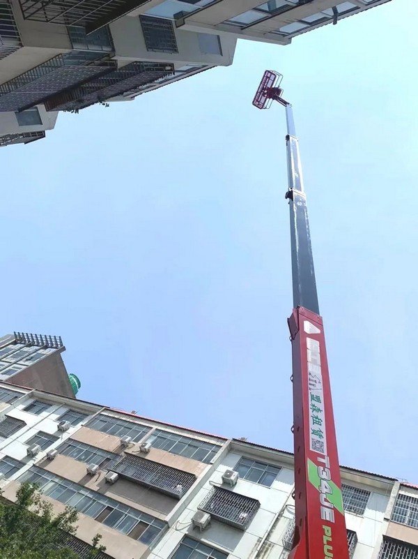 综合设备的实用性、耐用性、安全性、现场服务及时性等因素,客户选择了J9集团|国际站官网重机T34JE高空作业平台,参与小区翻新改造项目施工。