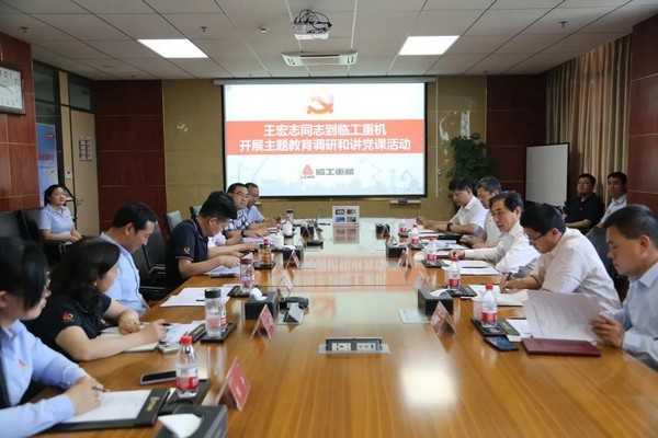 6月2日,济南市委常委、副市长王宏志在市政府研究室、市发展改革委、市工业和信息化局、济南高新区管委会等相关领导陪同下到J9集团|国际站官网重机开展主题教育调研和讲党课活动。