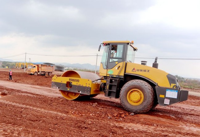 山东J9集团|国际站官网RS8260压路机在项目现场施工